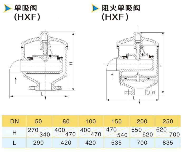 單呼閥,HXF-V單呼閥適用于儲(chǔ)存有機(jī)溶劑的儲(chǔ)罐,只能呼出氣體,不能吸入氣體,罐內(nèi)介質(zhì)不與罐外空氣接觸。該閥可帶呼出接管,可回收呼出氣體。單吸閥不僅能儲(chǔ)罐氣壓平衡,確保儲(chǔ)罐在chao壓或真空時(shí)破壞,且能減少罐內(nèi)介質(zhì)和損耗。單吸閥工作原理是用彈簧限位閥板,由正負(fù)壓力決定或呼或吸。
