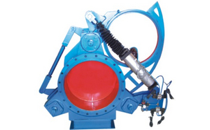 氣動盲板閥,F643X氣動盲板閥閥體中設(shè)有夾緊、松開汽缸和翻板汽缸,夾緊、松開汽缸通過杠桿副和絲桿螺旋副驅(qū)動左、右閥體完成松開、夾緊動作,翻板汽缸驅(qū)動閥板完成開關(guān)動作。橡膠密封圈鑲嵌在閥板上,具有耐溫高、密封性能好、更換方便、使用壽命長等特點。