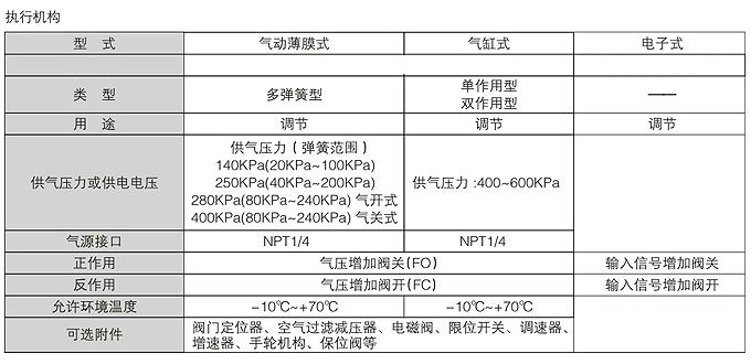 執(zhí)行機構:氣動薄膜式執(zhí)行機構、氣動活塞式執(zhí)行機構、電動執(zhí)行機構