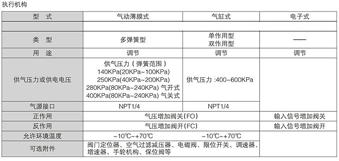 執(zhí)行機(jī)構(gòu):氣動薄膜式執(zhí)行機(jī)構(gòu)、氣動活塞式執(zhí)行機(jī)構(gòu)、電動執(zhí)行機(jī)構(gòu)