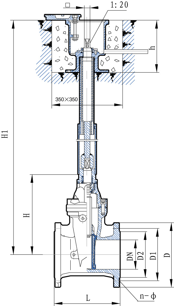 直埋式閘閥,直埋式加長桿閘閥相關(guān)尺寸結(jié)構(gòu)圖: