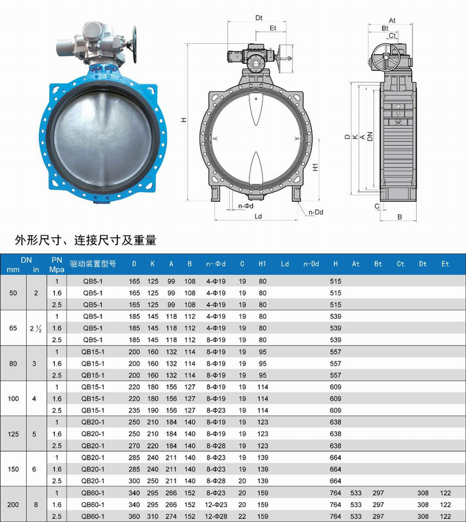 電動法蘭蝶閥,電動法蘭襯里蝶閥相關(guān)尺寸圖:
