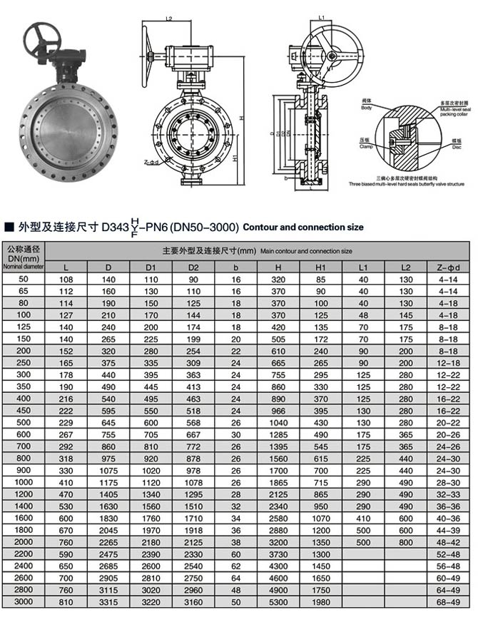 多層次硬密封蝶閥,三偏心多層次硬密封蝶閥相關(guān)尺寸圖: