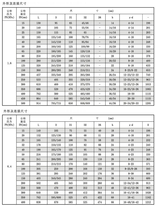 1.6、4.0、6.4MPa、ANSI150、300(Lb)、JIS10、20K |