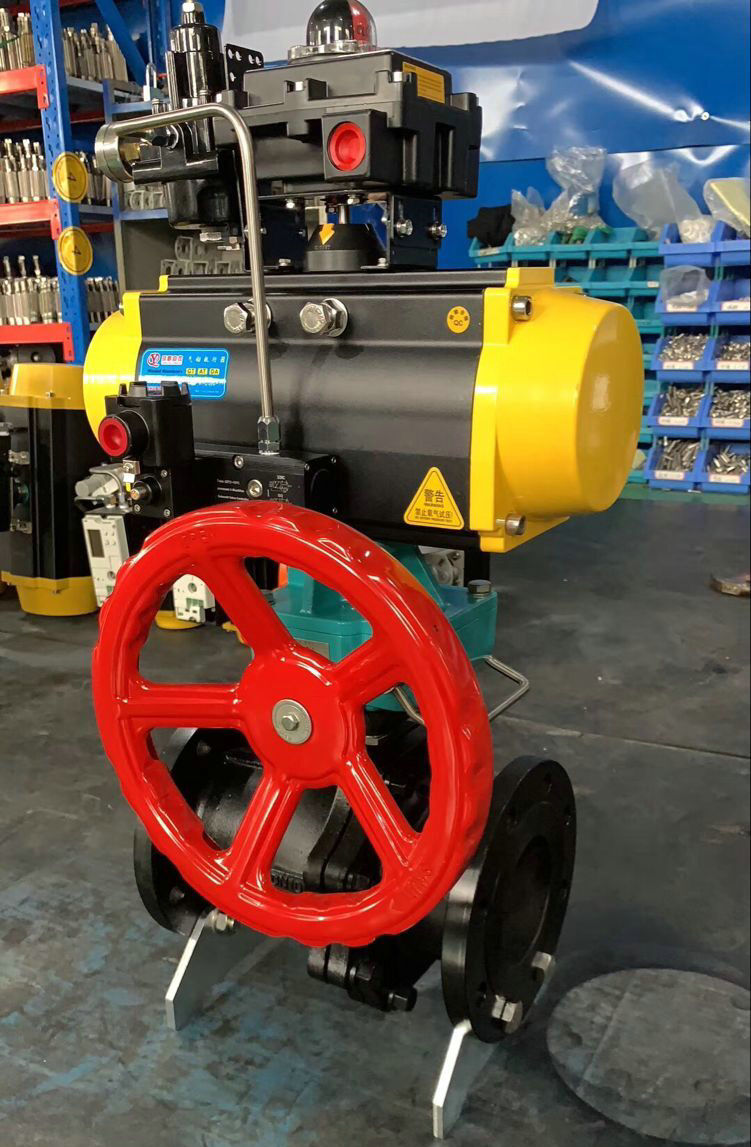 氣動(dòng)帶手輪球閥采用一體化結(jié)構(gòu)執(zhí)行器:執(zhí)行器形式、控制方式、控制信號(hào)(4-20MA)、作用方式(氣-開(kāi)式,氣-關(guān)式)和普通電動(dòng)球閥相比具有結(jié)構(gòu)緊湊,體積小,重量輕,閥座與端面法蘭距離近,物料滯留少?梢噪妱(dòng)啟閉也可以手動(dòng)啟閉,密封性能等特點(diǎn)。通常適用于密封要求嚴(yán)格的場(chǎng)合,廣泛應(yīng)用于化工、石油、制藥、輕工等行業(yè)的自動(dòng)控制。采用V型通道球體結(jié)構(gòu)與電子式電動(dòng)執(zhí)行器配套可實(shí)現(xiàn)流量的調(diào)節(jié)。工作壓力到16.0MPa,設(shè)計(jì)溫度550以下。