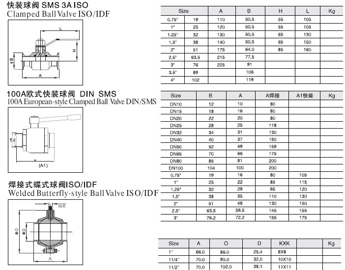 快裝球閥,衛(wèi)生級快裝球閥尺寸圖: