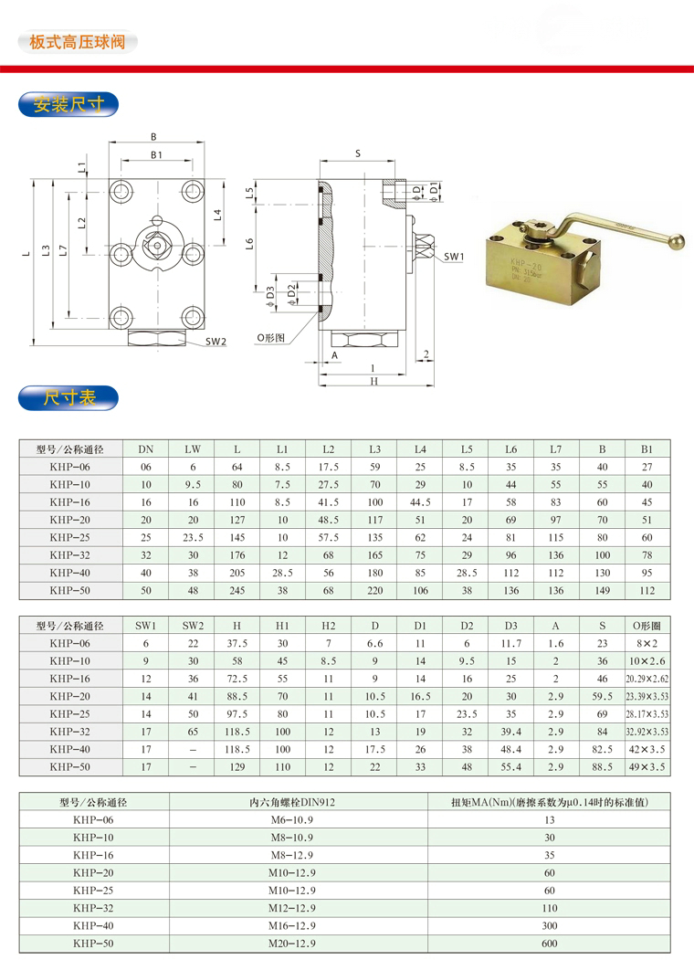 板式球閥,KHP高壓板式球閥參數(shù)尺寸圖:
