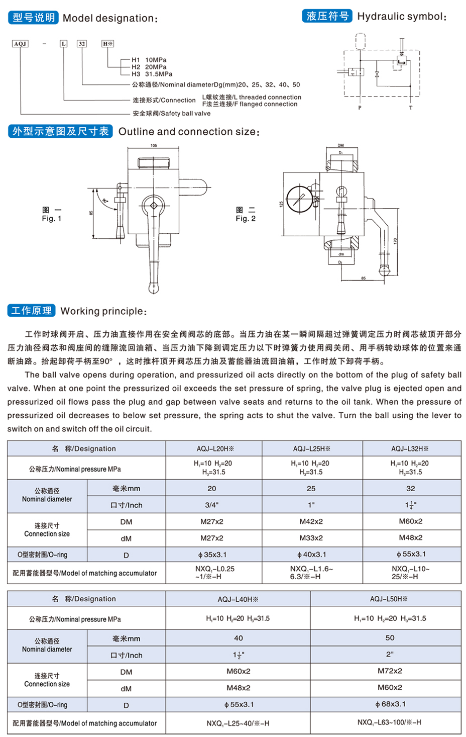 安全球閥,AJF,AQJ,安全球閥是在(原AQF型安全球閥的基礎(chǔ)上設(shè)計(jì)),用于液壓系統(tǒng)中起著蓄能器的安全、斷流、卸荷的。液壓配套元件已廣泛應(yīng)用于石油、化工、冶金、機(jī)械等行業(yè),深受用戶(hù)歡迎,使用壽命長(zhǎng),主要零部件材料具有抗腐耐磨性能。流通能力好、響應(yīng)速度快,可提高系統(tǒng)工作效率。該球閥其特點(diǎn):外形體積小,表面鍍鉻光亮。