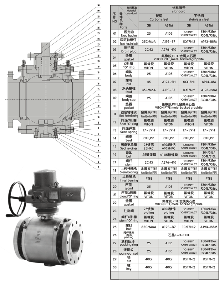 電動固定球閥,Q947H電動固定式球閥高性能球閥,適用于長輸管線和一般工業(yè)管線,其強度、安全性、耐惡劣環(huán)境性等在設計時進行了考慮,適用于各種腐蝕性和非腐蝕性介質。它與浮動球閥相比,工作時,閥前流體壓力在球體上產生的作用力全部傳遞給軸承,不會使球體向閥座移動,因而閥座不會承受過大的壓力,所以固定式球閥的轉矩小、閥座變形小,密封性能穩(wěn)定、使用壽命長,適用于高壓、大口徑場合。先進的彈簧預閥座組件,具有自緊特性,實現(xiàn)上游密封。每閥有兩個閥座,每個方向都能密封,因而安裝沒有流向限制,是雙向。