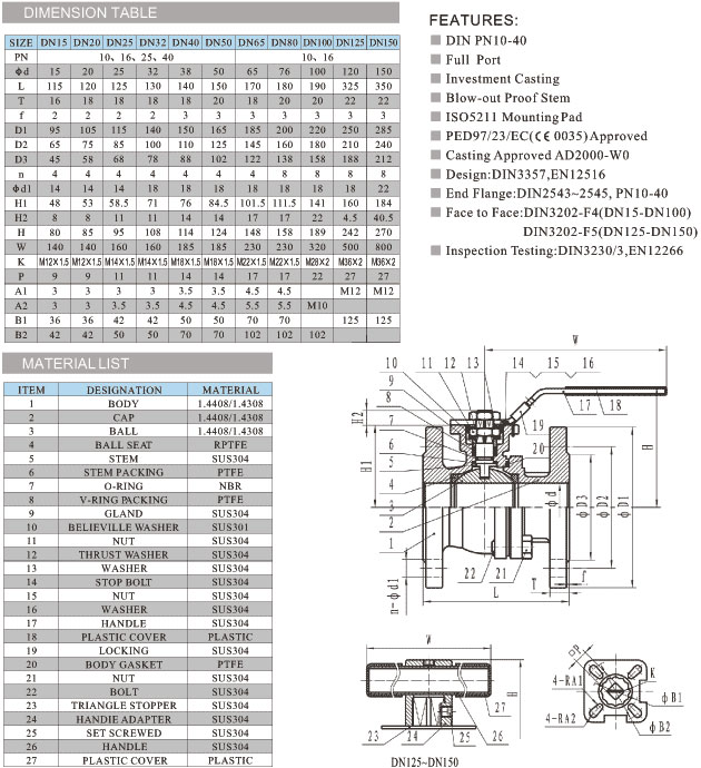 DIN德標(biāo)球閥,德標(biāo)高平臺(tái)球閥特點(diǎn)設(shè)計(jì)標(biāo)準(zhǔn) :DIN 3357-1,EN12516-1